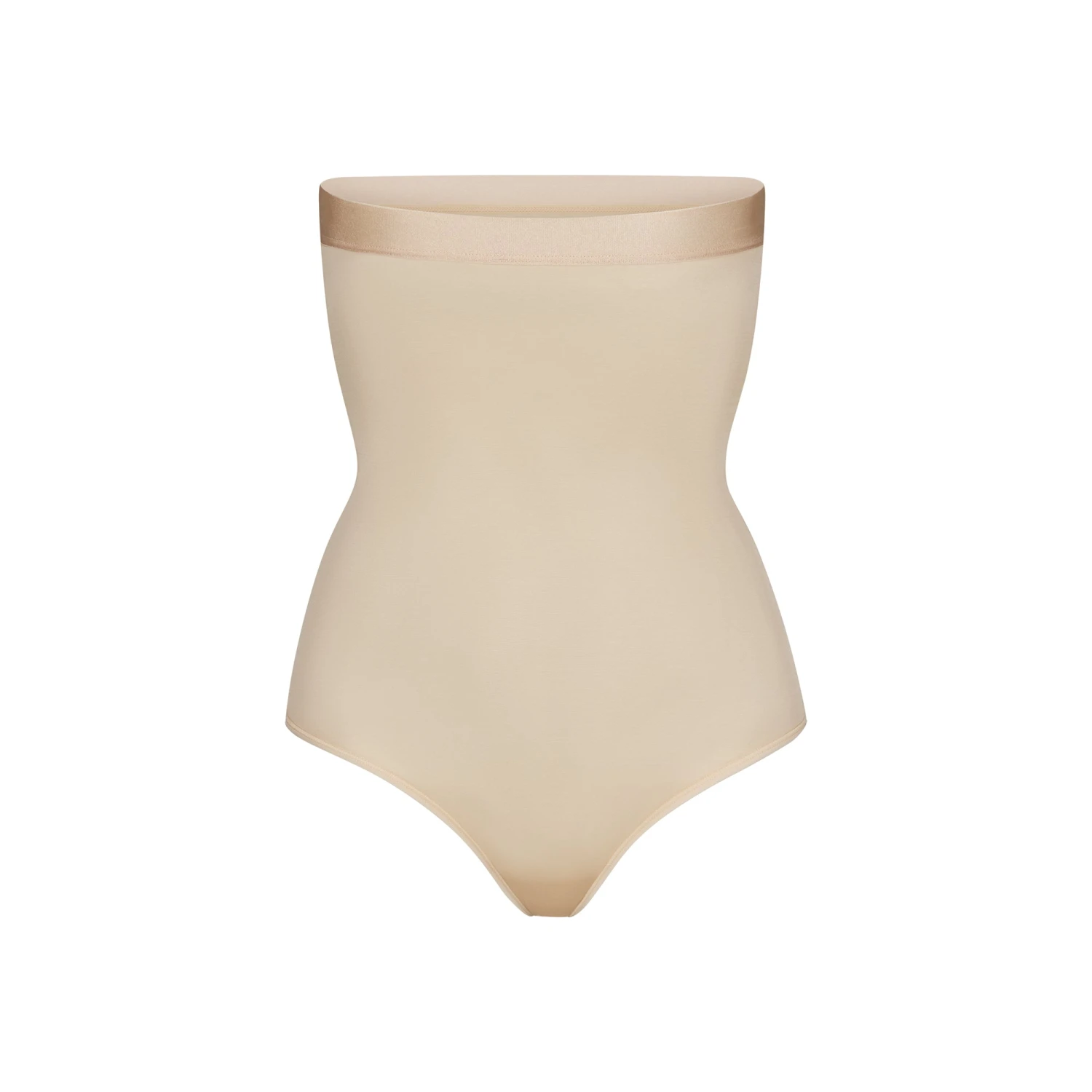 This high-waist thong smooths your core and hips while feeling like a comfortable second skin. Features a cotton gusset lining and double-layered fabric for smoothing and light compression. Wear under bottoms and dresses for a seamless look with no panty lines. Fits true to size.