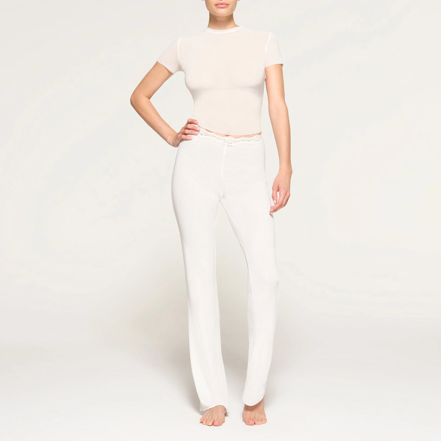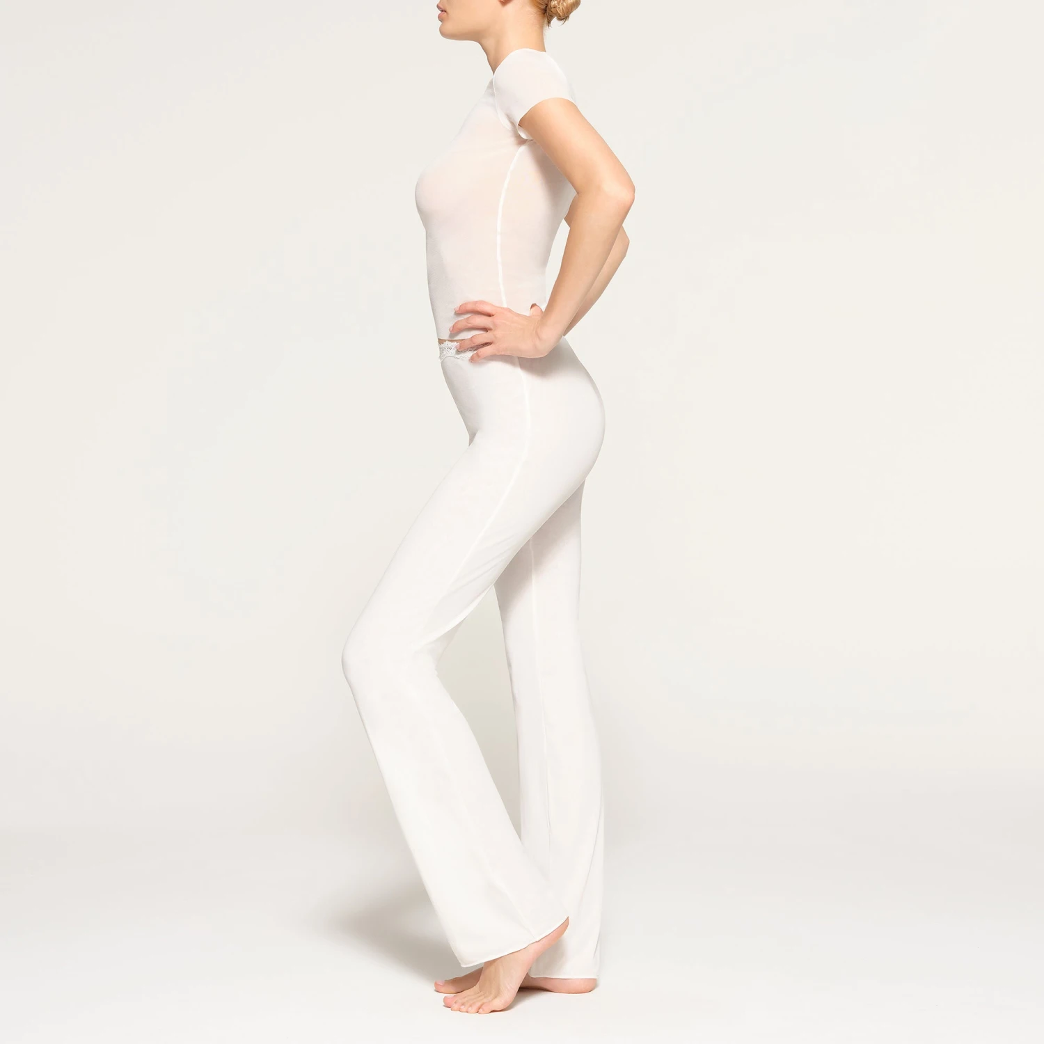 for more coverage. Features raw edge sleeves and hits right below the natural waist. Make it a set with our Mesh