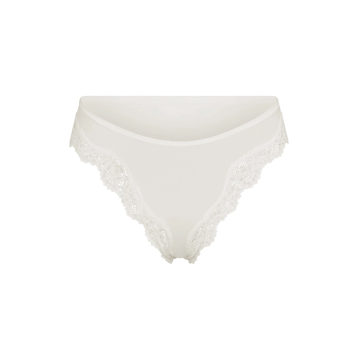 A cheeky, mid-rise tanga with ultra-luxe lace details. Features a 100% cotton gusset. Fits true to size.