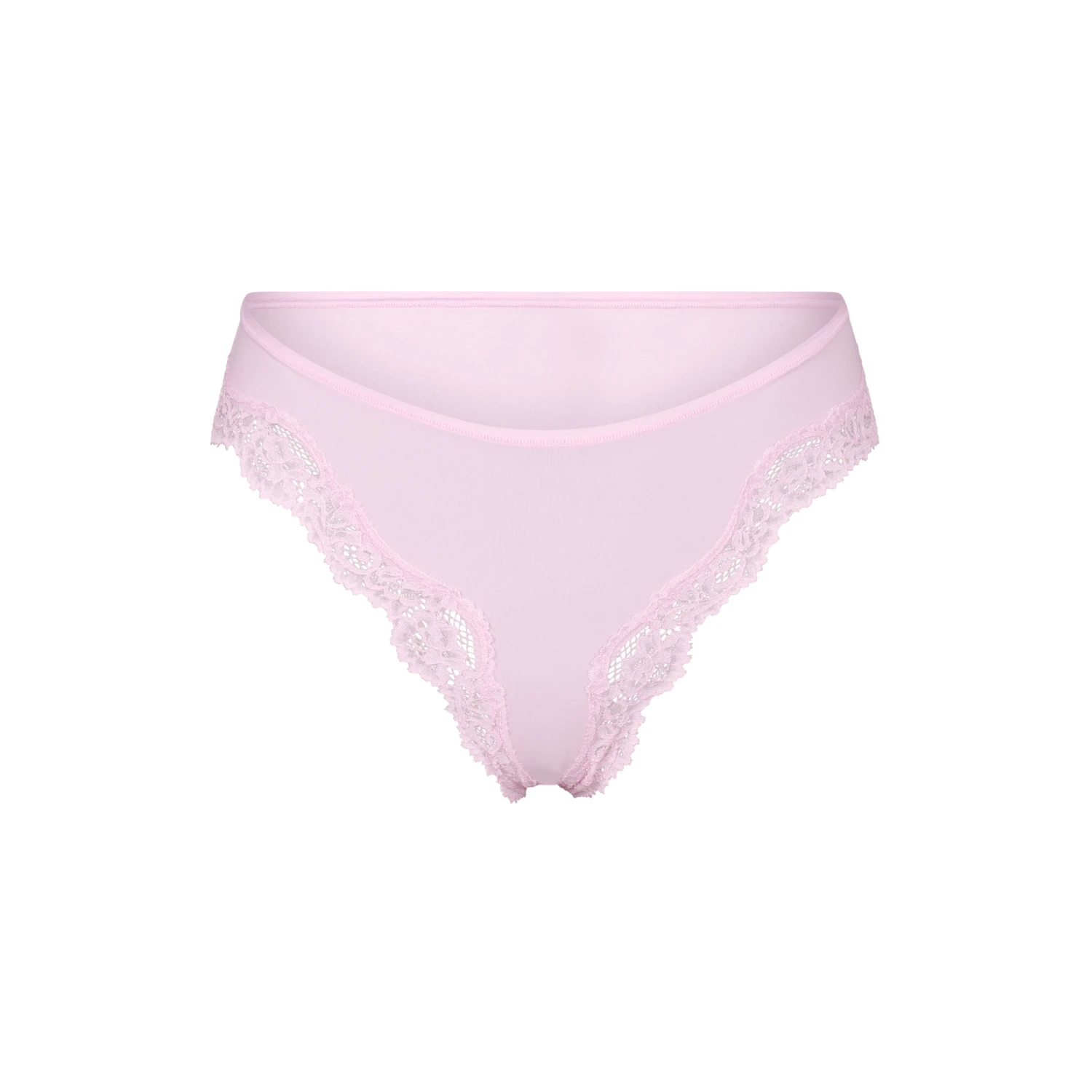 with lace details, boxed and ready-to-gift. This pack has 5 panties that feature a mid-rise fit, cheeky back coverage, lace trim along the leg opening, and a 100% cotton gusset. Fits true to size.