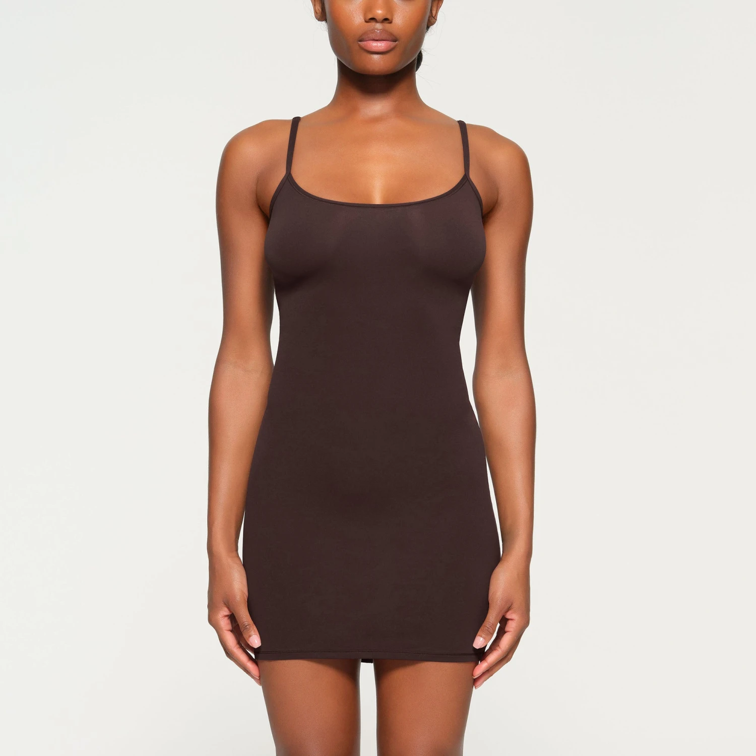 that hugs your curves. Form-fitting and lightweight, this style is perfect to wear under other dresses as second-skin lining.