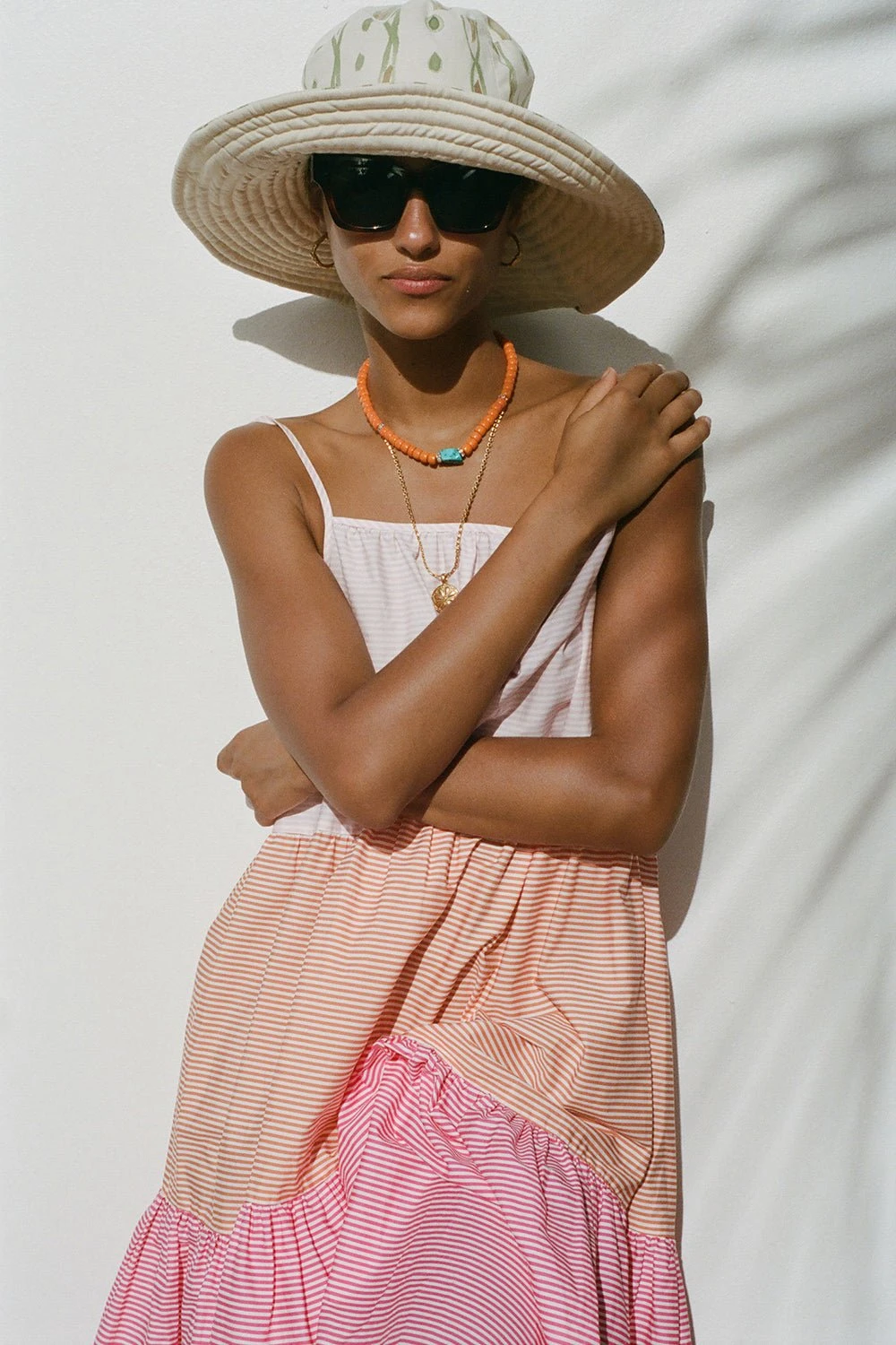 Gin From the Pampa’s I am Diva Necklace, is a stand-out staple every outfit will need this Summer. Pair this colorful piece with our Addison Dress in Striped Shirting.