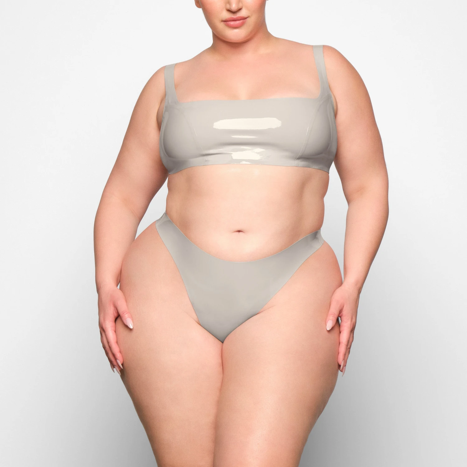 This garment is 100% latex and may cause sensitivities or severe allergic reactions in some individuals. SKIMS recommends testing a small patch of your skin against latex before fully putting the garment on.
