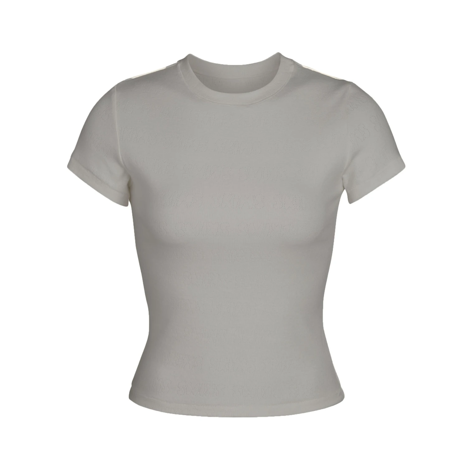 A classic, fitted crew neck tee that’s just right in every way. Features repeating SKIMS logo eyelet detail. Fits true to size.