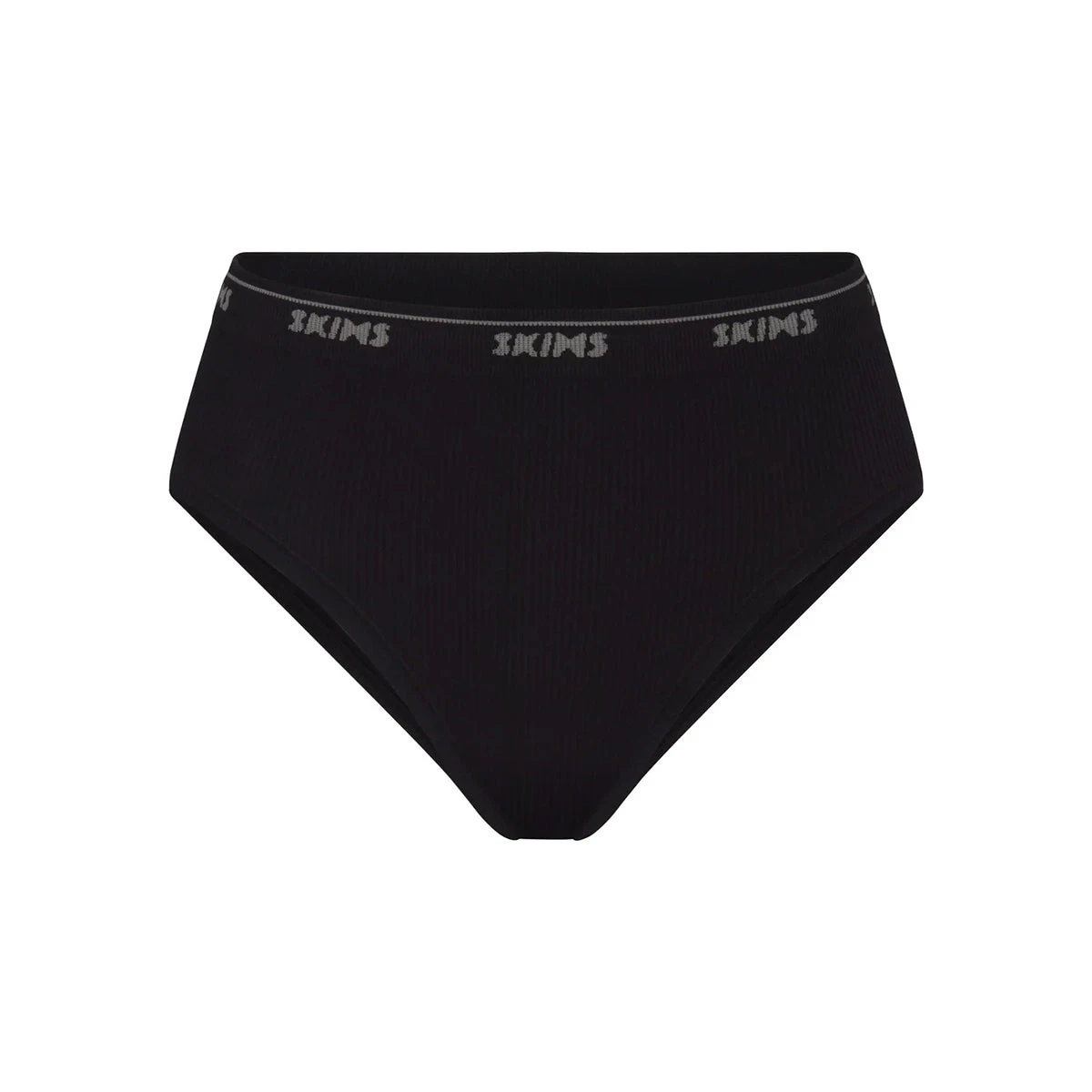 An ultra-lightweight, high leg bikini with a mid rise fit and stretchy waistband that has SKIMS logo details all over it. Features medium coverage and a cotton gusset. Make it a set with the matching Logo Rib