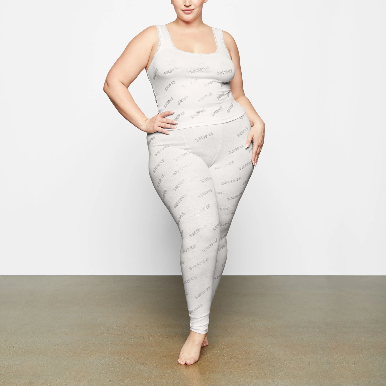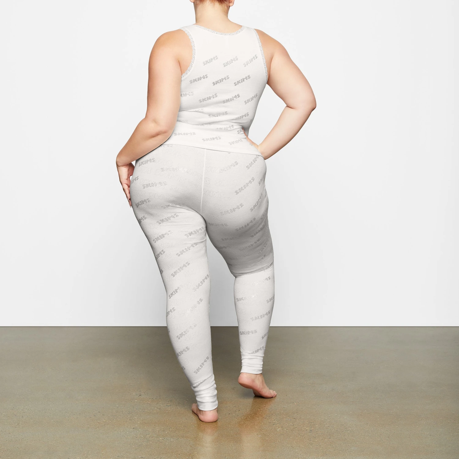 This classic feminine tank has delicate lace trims along the neckline and arm opening and repeating SKIMS logo with rhinestone details. Features rosette accent at center front neckline. Complete the look with Rhinestone Pointelle Legging. Fits true to size.