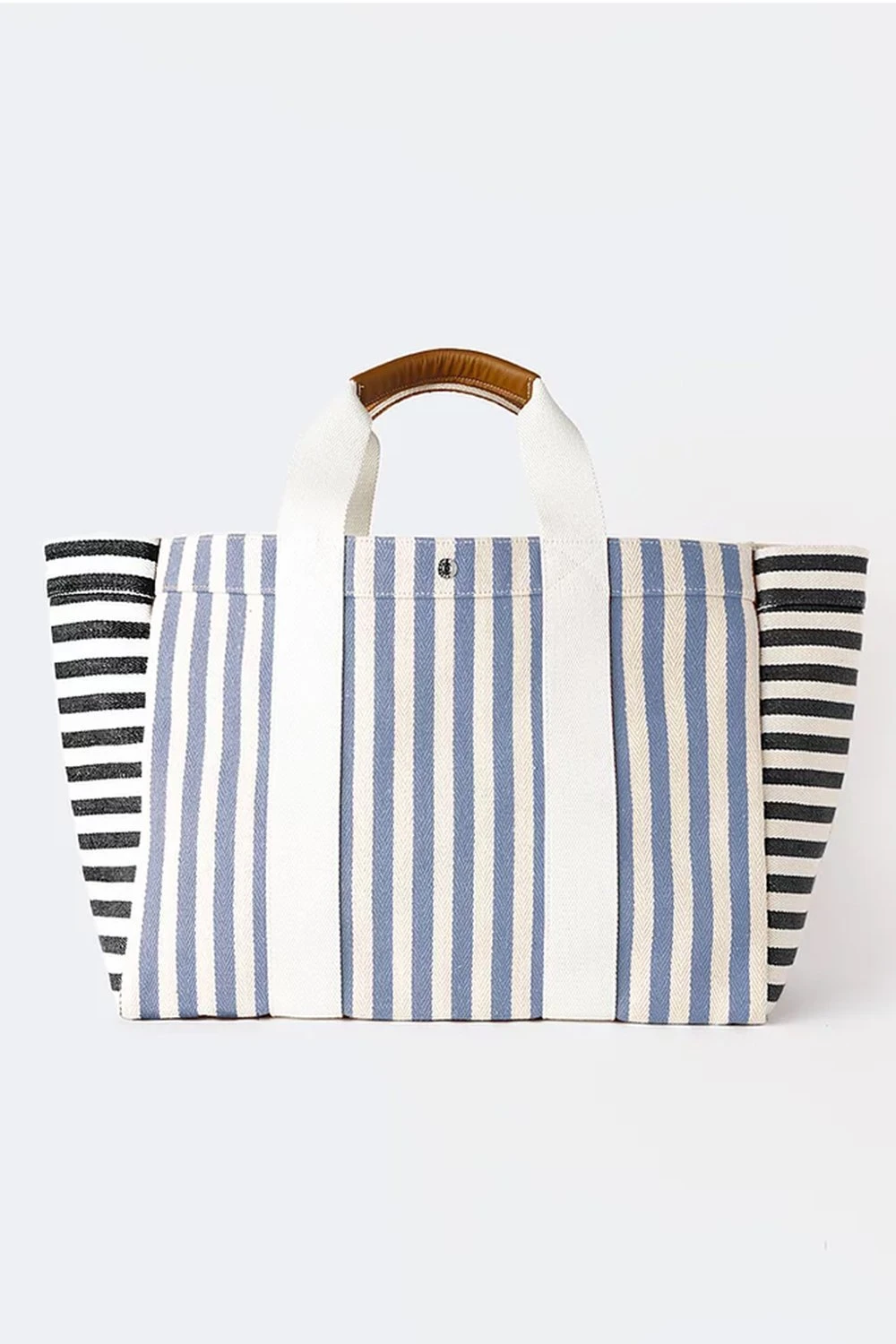 Designed and carefully made in France, this Cotton handbag is lined with soft cotton and contrasting striped panelling and straps.