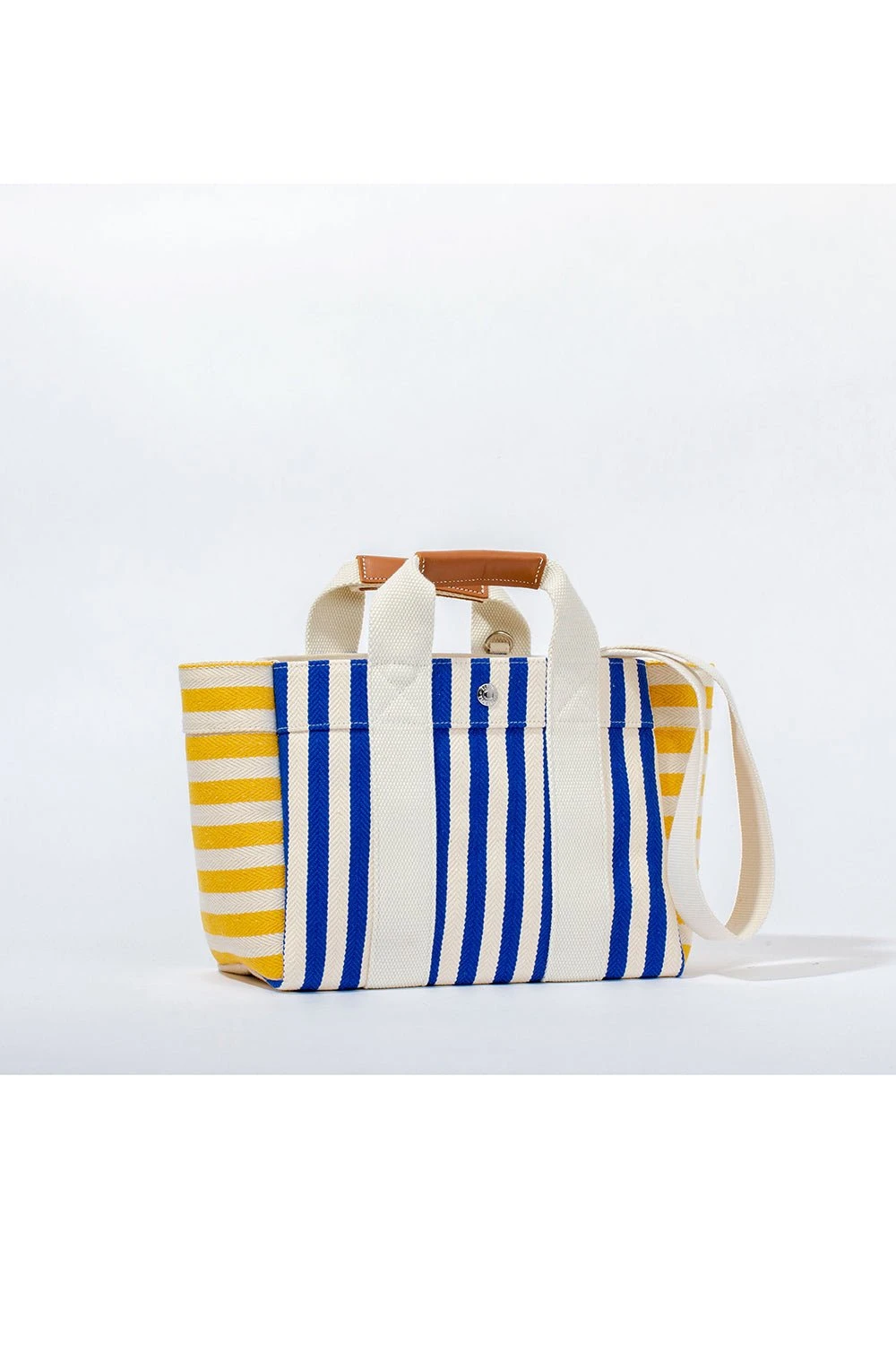 Medium “Parcours” Blue and Yellow striped cotton-canvas tote bag.