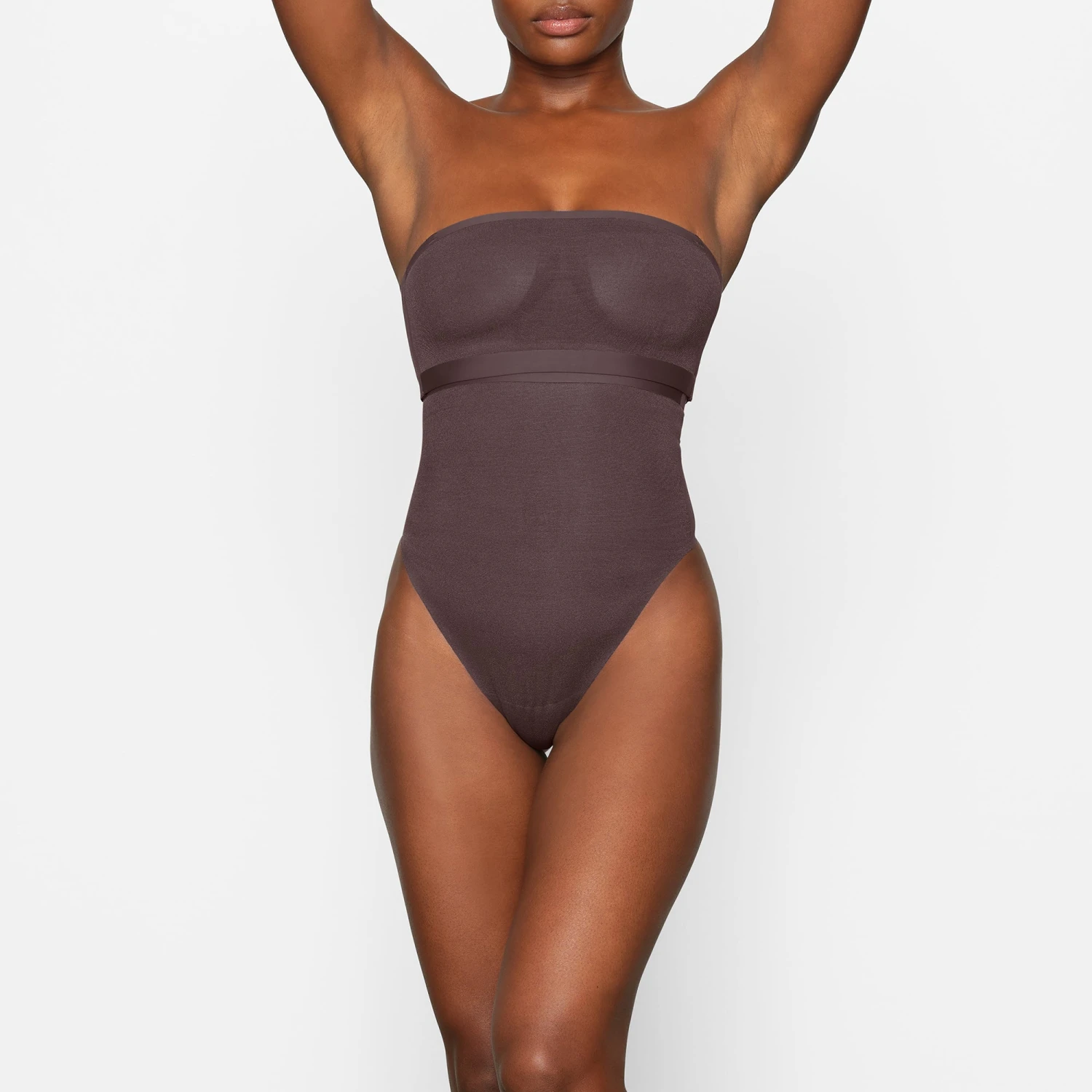 The Sheer Sculpt High Waist Thong offers full coverage smoothing and targeted compression for waist and tummy, with an ultra-high fit that sits underneath your bra line with a