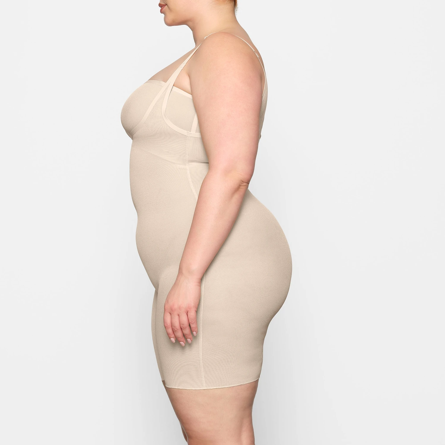 Invisible under everything, this sheer bodysuit holds in your core, smooths your upper thighs, and lifts and shapes your butt. Its silky construction and extra low back make this