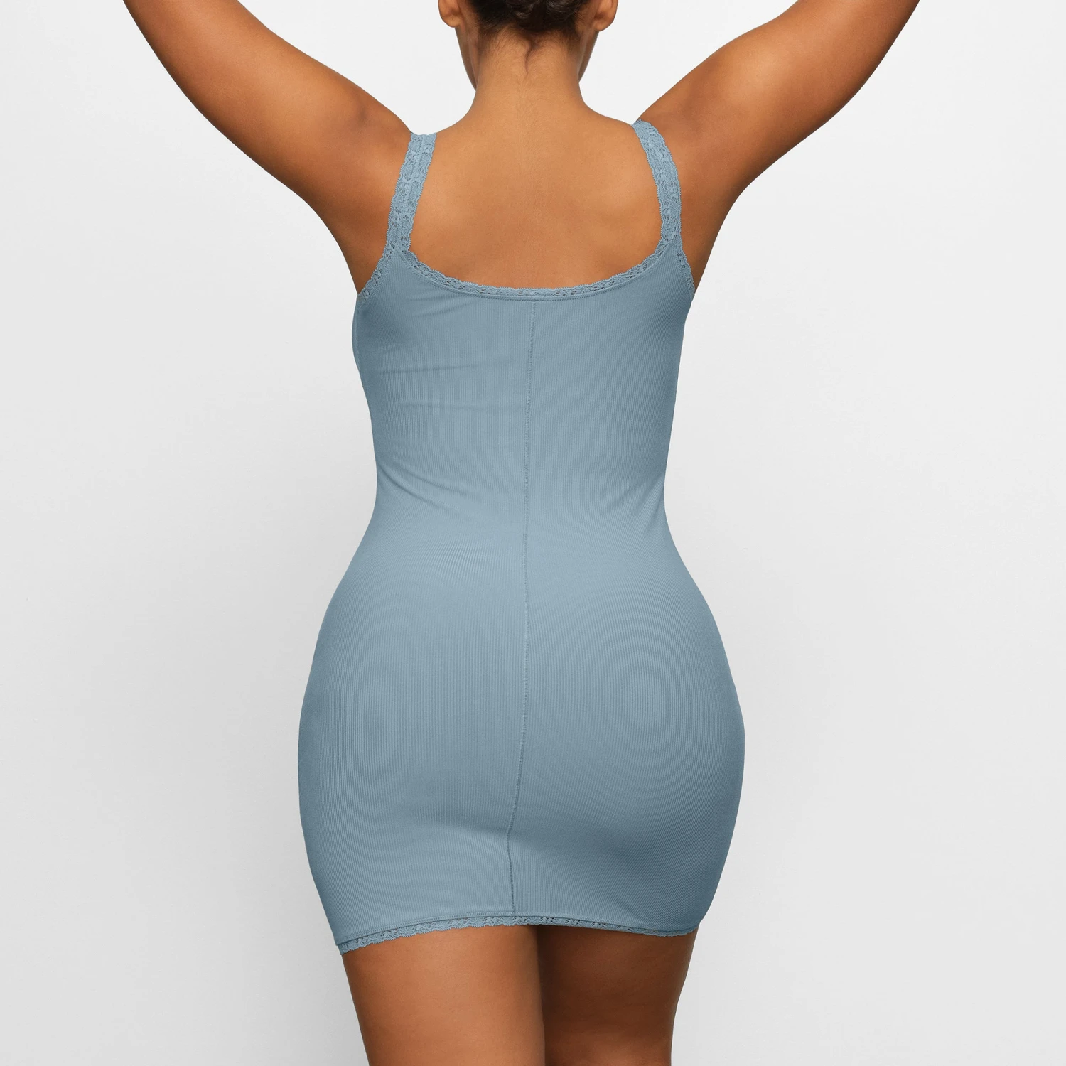 has the prettiest lace details along the neckline, straps, and bottom edge. Fits true to size.