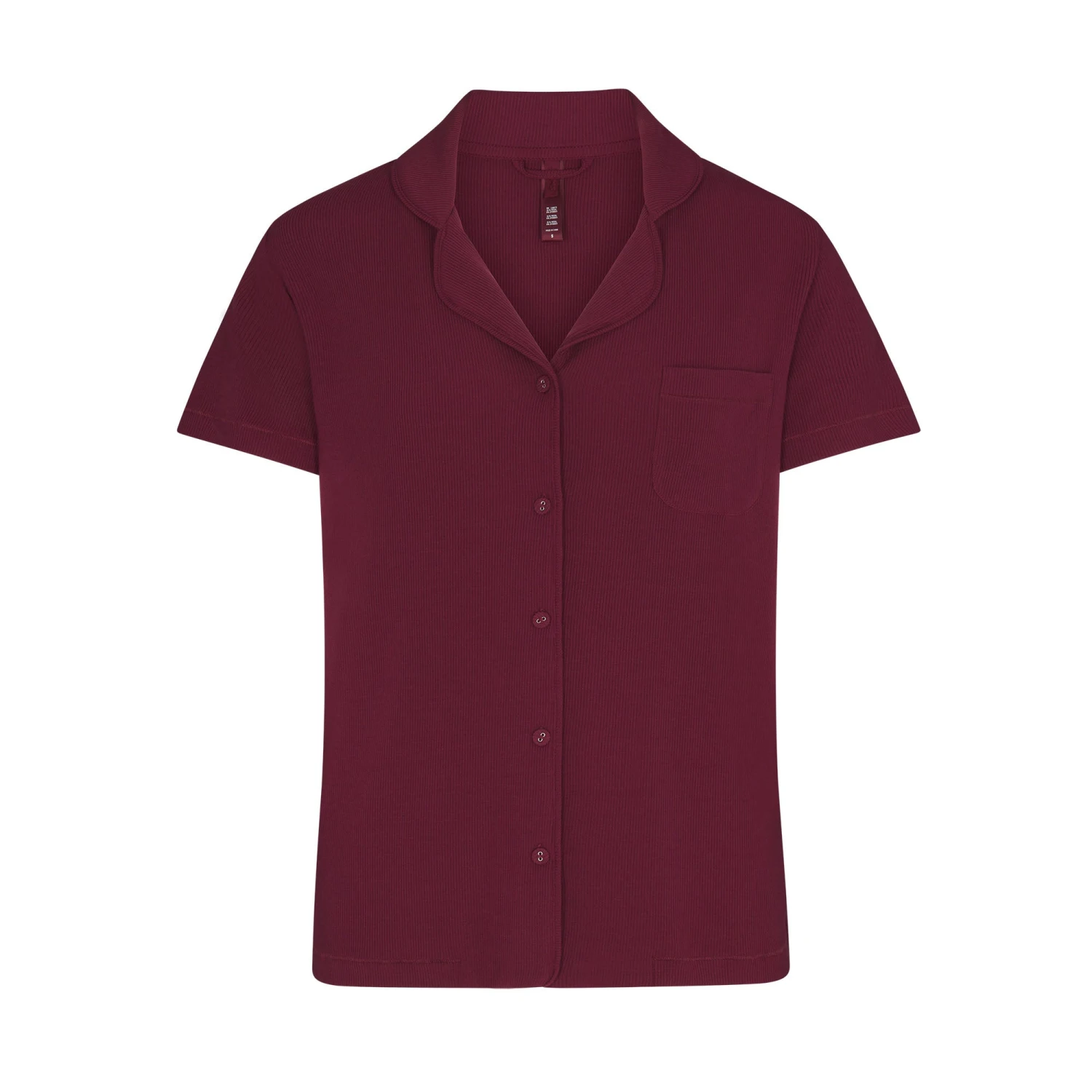 top and fitted shorts have a classic look and ultra-comfortable feel. Features chest pocket details and interior drawstrings. Fits true to size.