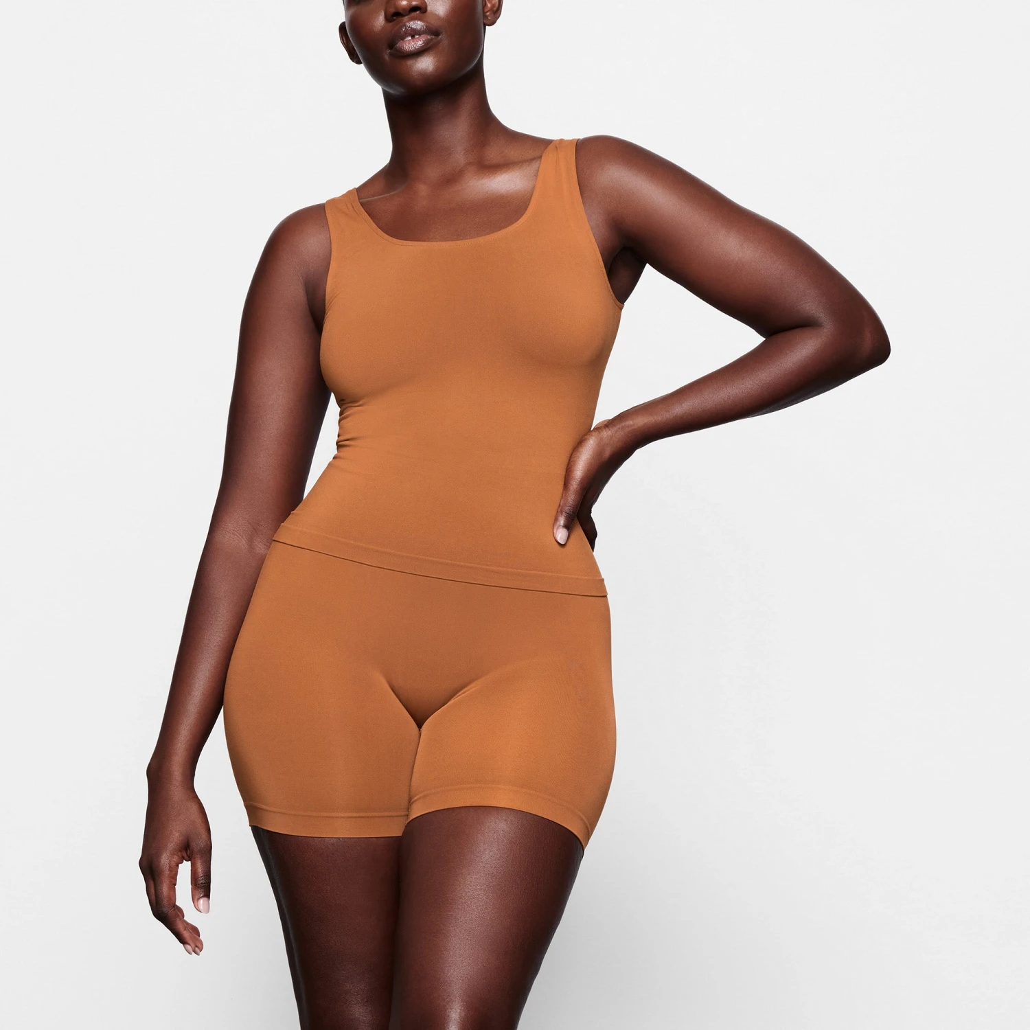 has a flattering, second-skin fit that clings to your body. This tank can be worn alone or under