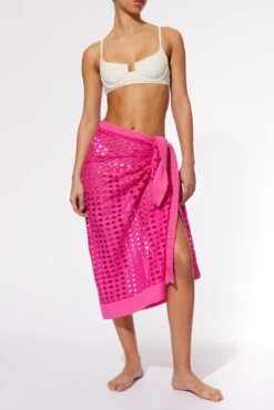 Our classic sarong cover-up with a fresh update. Now featured in our newest eyelet fabrication, this pareo is perfect to throw over any suit. Pair it with one of our sunglasses to complete your look.