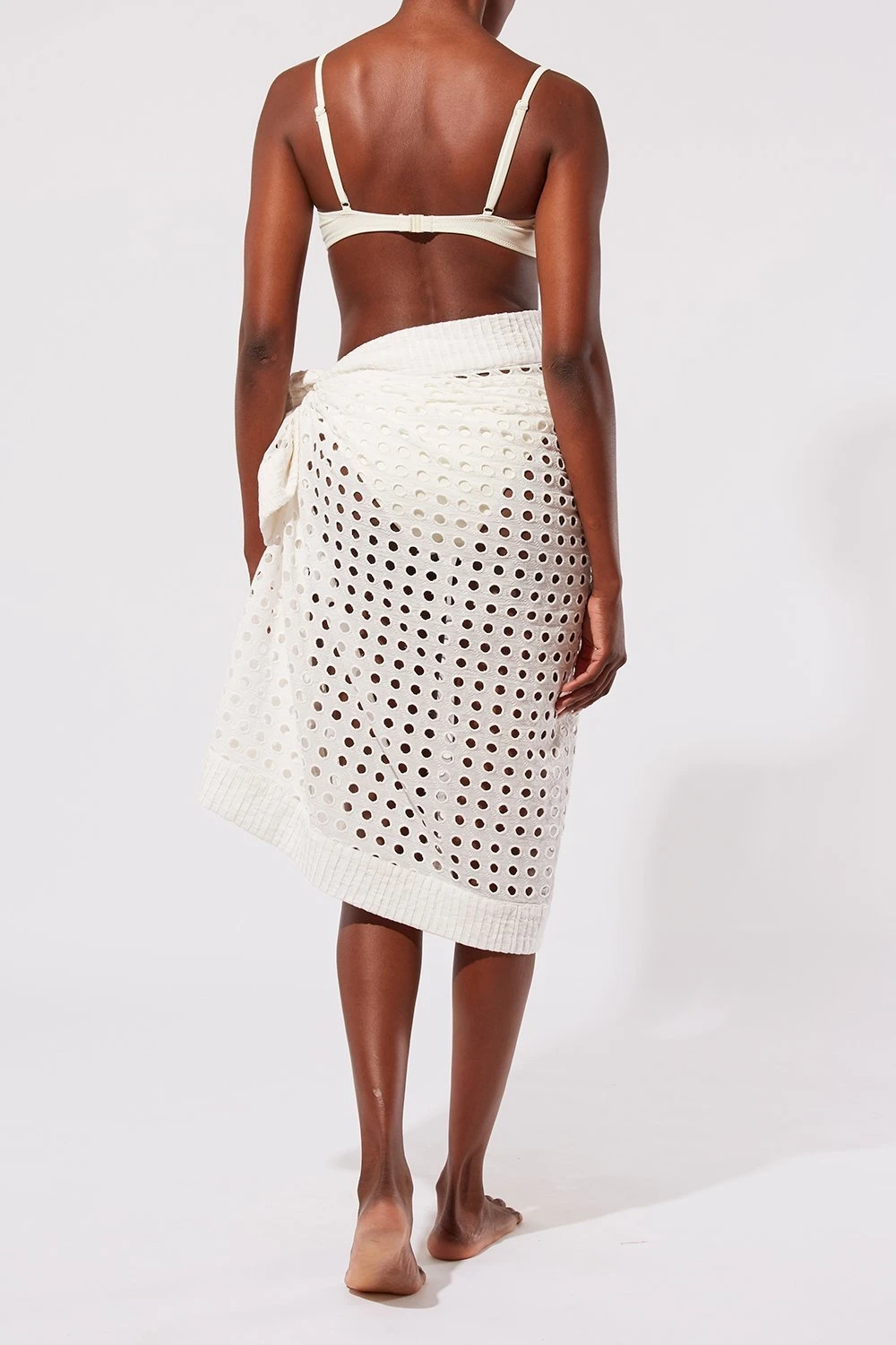 Our classic sarong cover-up with a fresh update. Now featured in our newest eyelet fabrication, this pareo is perfect to throw over any suit. Pair it with one of our sunglasses to complete your look.
