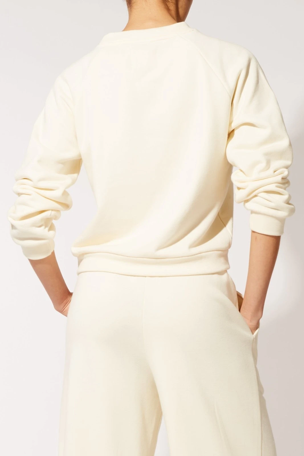 The Madga Sweatshirt, is a classic yet fun ode to St. Moritz. This slouchy silhouette pairs perfectly over your favorite suit or paired with a bottom of your choice.