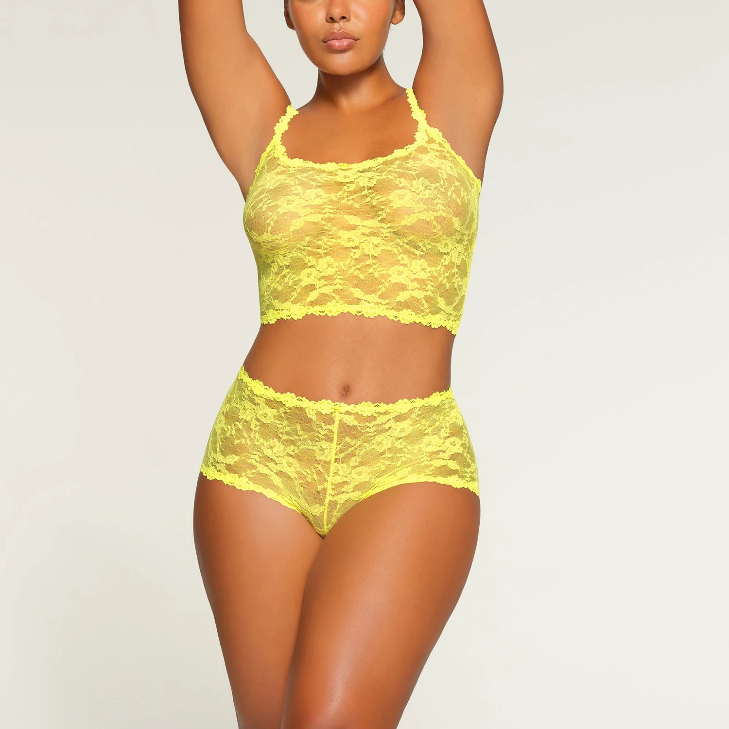 STRETCH LACE BOY SHORT | YELLOW HIGHLIGHTER